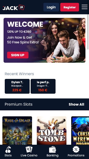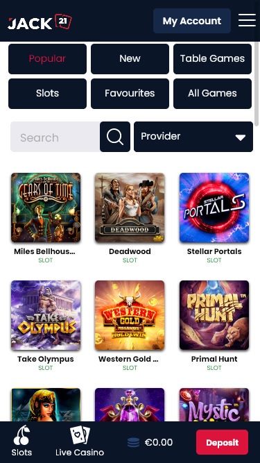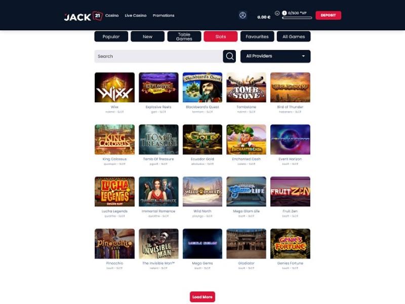 Jack21 賭場由 Microgaming, Net Entertainment, BetSoft, 1x2gaming, Big Time Gaming, ELK Studios, Evolution Gaming, Ezugi, Genesis Gaming, Habanero Systems, iSoftBet, Oryx, Play'n GO, playson, Quickspin, Rabcat, Relax Gaming, Thunderkick, Vivo Gaming, Yggdrasil, Endorphina, Wazdan, GameArt, Betgames, Booming Games, Pragmatic Play, Nolimit City, Red Tiger Gaming, Spinomenal, Fugaso, Kalamba, Triple Edge Studios, Northern Lights Gaming, Evoplay, Stormcraft Studios, Switch Studios, OneTouch, Pocket Games Soft, Triple PG, All41 Studios, Gameburger Studios, Pulse 8 Studios, Neon Valley Studios, Golden Rock Studios, SpinPlay Games, Caleta Gaming, Games Global, Amusnet Interactive, Wizard Games, 2by2 Gaming, Blueprint Gaming, Pariplay, Push Gaming, Tom Horn Gaming, Gamomat, Xplosive Slots, Reel Time Gaming, BF Games, betiXon, HollywoodTV, Ganapati, Iron Dog Studio, Old Skool Studios, Foxium, Just For The Win, Slingshot Studios, Fortune Factory Studios, 4ThePlayer, AvatarUX, SlotVision, Alchemy Gaming, Snowborn Games, Hacksaw Gaming, Half Pixel Studios, Eurostar Studios and PlayAce提供支持,並使用網頁平台發布遊戲。網站設計精良,瀏覽方便,我可以輕鬆找到自己想玩的遊戲。 Jack21 內建行動端支持,方便您透過智慧型手機或平板電腦暢玩。