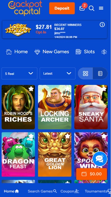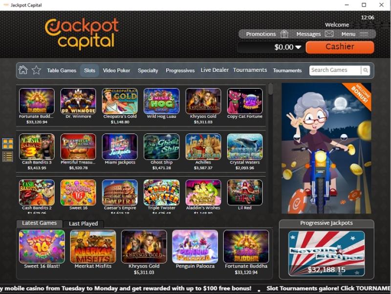 Jackpot Capital 賭場由 Real Time Gaming and Visionary iGaming提供支持,為玩家提供數十款適合美國玩家的遊戲。賭場提供網頁平台以及可下載的軟體,方便您將所有賭場遊戲下載到電腦上。