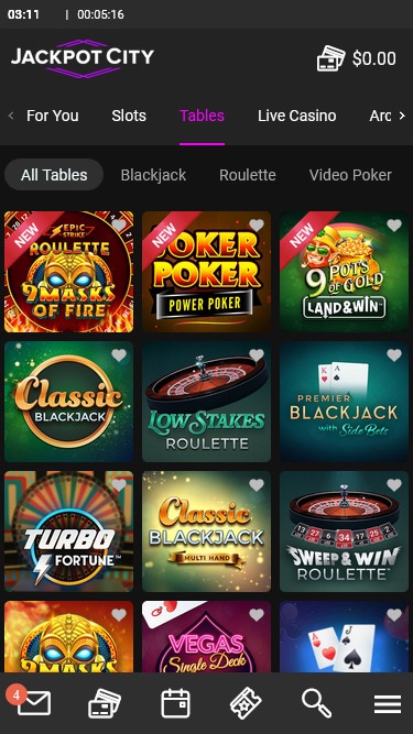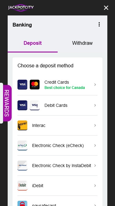 Jackpot City 賭場由 Microgaming, Net Entertainment, Pragmatic Play, Triple Edge Studios, Northern Lights Gaming, Stormcraft Studios, Switch Studios, All41 Studios, Gameburger Studios, Pulse 8 Studios, Neon Valley Studios, SpinPlay Games, Real Dealer Studios, GONG Gaming, On Air Entertainment, Buck Stakes Entertainment, Games Global, Blueprint Gaming, Old Skool Studios, Foxium, Just For The Win, PearFiction Studios, Wild Streak Gaming, Slingshot Studios, Fortune Factory Studios, Crazy Tooth Studio, Alchemy Gaming, Snowborn Games, Hacksaw Gaming, Gold Coin Studios, Half Pixel Studios, Eurostar Studios, Aurum Signature Studios, Area Vegas, Spribe, Circular Arrow, HammerTime Games, INO Games, Nailed It! Games, Neko Games, Reel Kingdom, Oros Gaming and Ready Play Gaming提供支持,為客戶提供數百款遊戲。該賭場提供網頁版和可下載的客戶軟體。此外,也提供行動版賭場,方便希望透過智慧型手機或平板電腦暢玩的玩家。