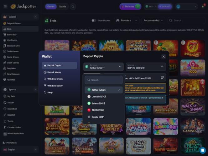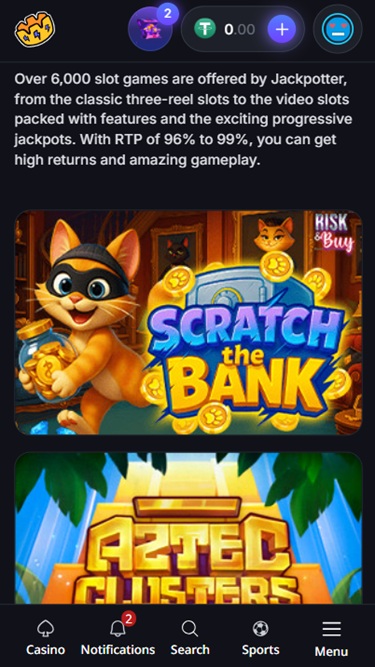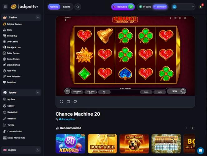 Jackpotter 的體育版塊保證了豐富的選擇,涵蓋了足球、電子足球、籃球、網球、冰球、反恐精英、Valorant、Dota 2、國際象棋、一級方程式賽車、排球、英雄聯盟等熱門體育項目,以及來自歐洲足聯、歐洲冠軍聯賽、澳超聯賽、美國職業棒球大聯盟和國家冰球聯盟等國際賽事的選項,此外還包括其他本土賽事。多個國家級聯賽也包含在內。此外,您還可以使用投注單功能,輕鬆快速地選擇並下注。