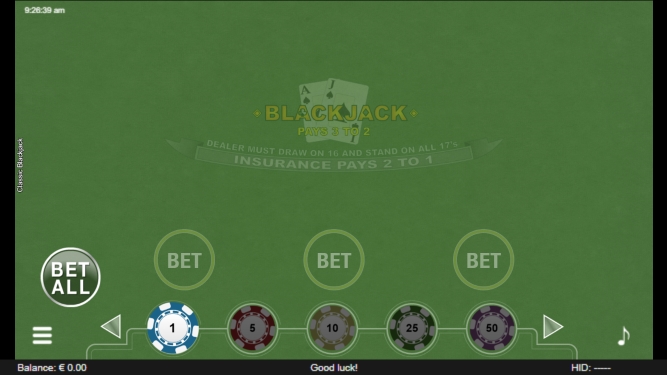 你可以玩兩種版本的Standard Blackjack標準⼆⼗⼀點。⼀種稱做 「professional series專業系列」、另⼀種就只稱為「Blackjack⼆⼗⼀ 點」。你也可以選擇以下的押注額度: