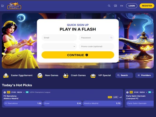 受《一千零一夜》民間故事的美學和故事的影響,JasminSlots 線上賭場配備了所有必要的工具,讓賭場玩家和體育博彩玩家在逗留期間都能感受到歡迎和尊重。
