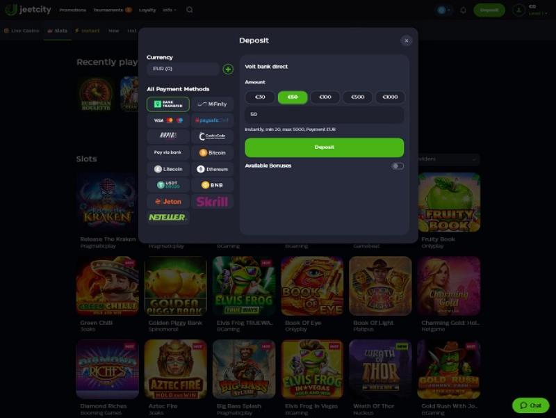 這家賭場主要針對加拿大、德國、丹麥、紐西蘭和愛爾蘭的玩家,為他們提供卓越的博彩平台和豐富的遊戲庫。當然,JeetCity 也接受來自全球其他地區的玩家。