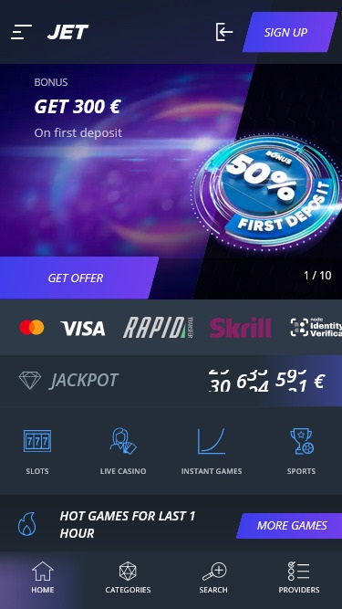 歡迎禮包包含五項獎勵。經常光顧 Jet 的玩家還可以享受誘人的獎勵包、現金獎勵和額外旋轉、錦標賽、彩票、現金返還優惠…