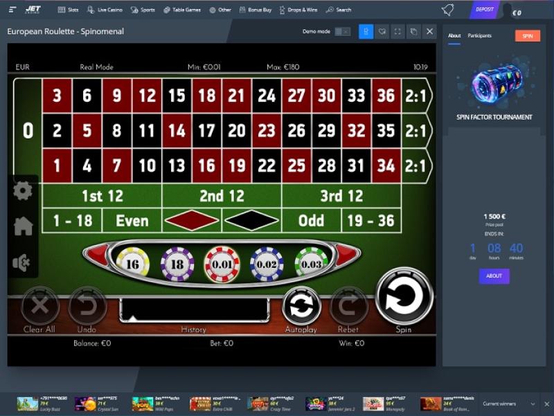 Jet 賭場提供桌上遊戲:3D 輪盤、二十一點、美式輪盤、歐式輪盤、3 手賭場德州撲克、加勒比撲克、百家樂、骰寶等。