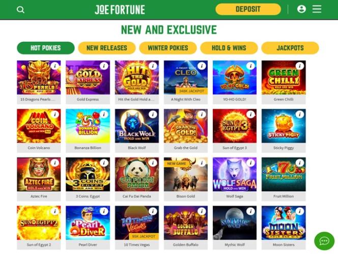 Joe Fortune 賭場由 Real Time Gaming, BetSoft, Genesis Gaming, Rival, Visionary iGaming, Booming Games, Pragmatic Play, Felt Gaming, Booongo, Spinomenal, Spinmatic, BGAMING, Evoplay, Dreamtech Gaming, Bulletproof Games, Radi8 Games, Woohoo Games, HungryBear Gaming, Qora Games, Reevo, 2by2 Gaming, Leander Games, Nektan, Wager Gaming, Makitone Gaming, Jade Rabbit Gaming, NetGaming, BB Games, Dragon Gaming, Dragoon Soft, 3 Oaks Gaming and Playnova提供支持,其遊戲透過基於網頁的即時遊戲平台提供,玩家可透過網路瀏覽器註冊、存款、遊戲和提款。該賭場還支援行動平台,您可以透過智慧型手機或平板電腦進行遊戲。 2018 年 6 月,他們新增了由 Visionary iGaming 提供的真人荷官遊戲,例如真人二十一點、Super 6 和真人百家樂。