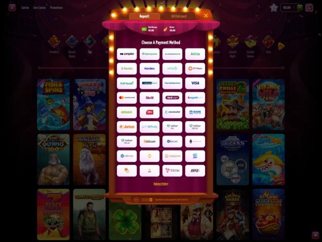 賭場部分包括老虎機、桌上遊戲、獎金購買、歌舞表演之夜、累積獎金和其他吸引人的類別,並擠滿了熱門遊戲,如 Bandidos Bang、Fire in the Hole 2、Magical Leprechaun、Eternal Clash、Jack Hammer 3 Diamond Affair、Fish & Spins、Lion Coins、Ina Treasures WildTama、Takr. Hold and Win、Barbarian、Scatters Matter、Kraken Bay、The Winners Arms、A Flight of Fortune 等。