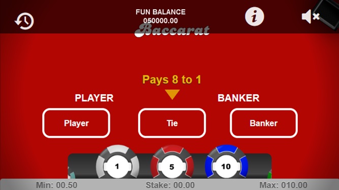 賭場之間因為競爭的緣故, Baccarat百家樂在tie和局通常⽀付9⽐1賠率, 或是Banker莊家的押注⽀付0.96的賠率, 不過Microgaming的賭場提供與 陸上賭場相同的標準規則。