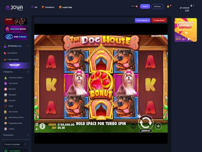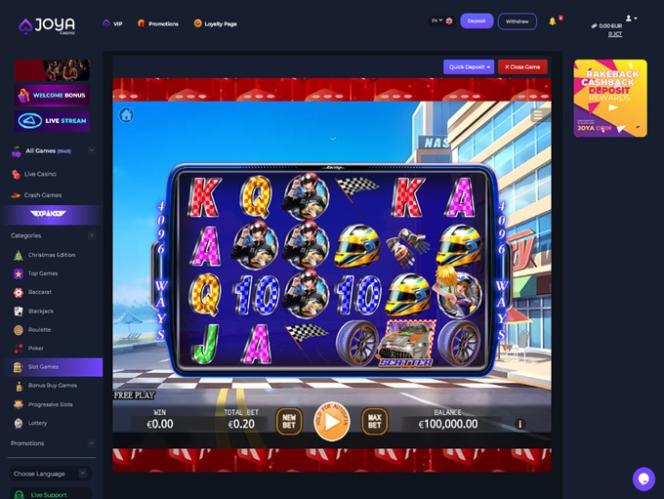 Joya Casino 也提供這項服務,玩家可以瀏覽 130 多家軟體供應商。選擇範圍如此廣泛,既包括Pragmatic Play 、 Play 'N Go 、 Relax Gaming和Microgaming等世界知名工作室,也包括Tom Horn Gaming、Booongo 和 Alchemy Gaming 等眾多小型開發商。