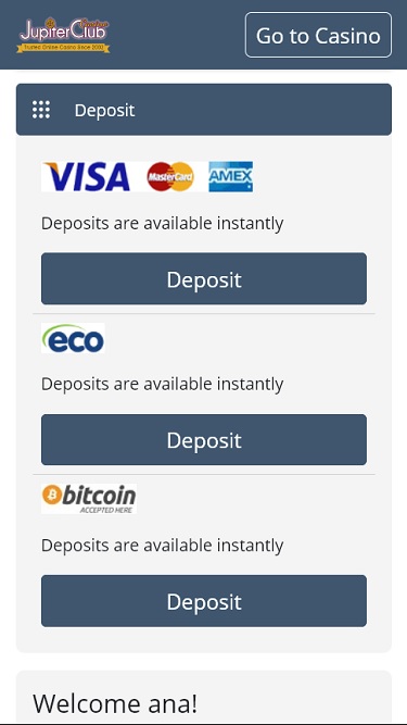 Jupiter Club Casino 由 BetSoft, Evolution Gaming, Rival, Saucify and Genii提供支持,它不僅提供網頁平台,還提供可下載的軟體。此外,該賭場還為希望在智慧型手機或平板電腦上玩遊戲的玩家提供行動網站。其他遊戲
