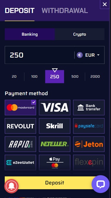 說到銀行選項,您可以選擇使用多種加密貨幣支付,因為這是加密貨幣線上賭場。可用的加密貨幣包括比特幣 (BTC)、萊特幣 (LTC)、以太坊 (ETH)、狗狗幣 (DOGE)、比特幣現金 (BCH)、泰達幣 (USDT)、卡爾達諾 (ADA)、瑞波幣 (XRP)、小蟻幣 (NEO)、幣安 (BNB)、比特幣 SV (BSX、XRP)、小蟻幣 (NEO)、幣安 (BNB)、比特幣 SV (BSX)、賭場賭場 (CSC)、CSC)。