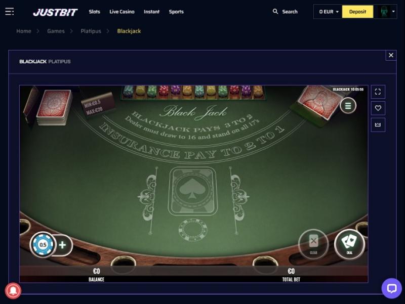 Justbit Casino Blackjack (Microgaming)展開