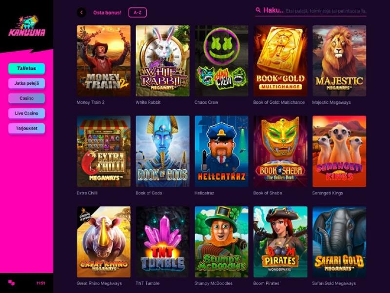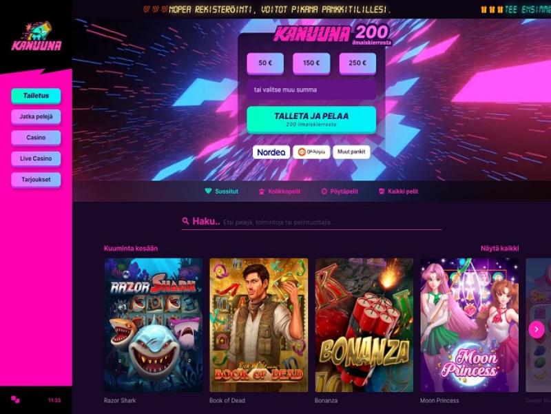 Kanuuna Casino 是一家成立於 2021 年的線上賭場,由 1Up Services Ltd. 擁有和營運。憑藉其令人印象深刻的遊戲收藏,該賭場立即開始吸引芬蘭賭客的注意,最重要的是,所有玩家都可以參加無限級別的精彩 VIP 計劃!