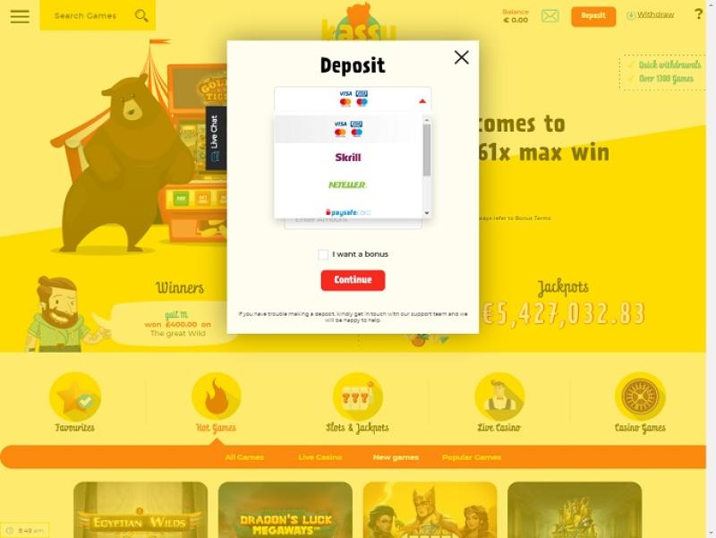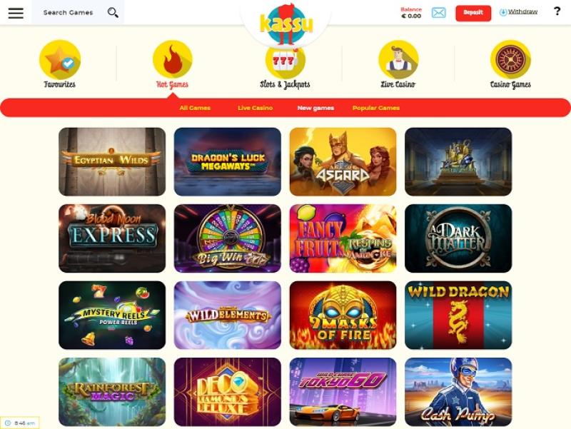Kassu 由 Microgaming, Net Entertainment, Big Time Gaming, Evolution Gaming, Ezugi, Genesis Gaming, iSoftBet, lightningboxgames, Oryx, Play'n GO, Quickspin, Rabcat, Relax Gaming, Yggdrasil, Wazdan, Pragmatic Play, Red Tiger Gaming, Fantasma Games, Kalamba, Skywind, Triple Edge Studios, Dreamtech Gaming, Bulletproof Games, All41 Studios, Gameburger Studios, Neon Valley Studios, Golden Rock Studios, TrueLab Games, Games Global, 2by2 Gaming, NextGen, Push Gaming, Cayetano, Gamomat, Old Skool Studios, Just For The Win, Reflex Gaming, Fortune Factory Studios, Jade Rabbit Gaming, Alchemy Gaming, Gold Coin Studios, Half Pixel Studios, SilverBack Gaming, Peter And Sons, Eurostar Studios and Aurum Signature Studios提供支持,賭場遊戲透過網頁即時遊戲平台提供,可透過瀏覽器載入。 Kassu 設計精良,導航至所需部分非常便捷。此外,它還支援行動端,方便您在手機或平板電腦上暢玩。