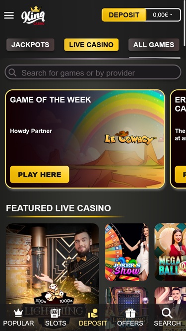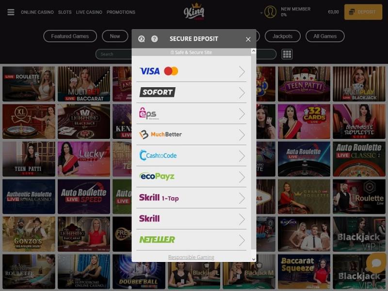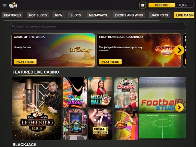 一些業內頂尖的遊戲供應商,例如 BetSoft、 Evolution Gaming 、Pragmatic Play 等,都與 King Casino 合作。雖然類別和遊戲搜尋結果需要更多關注,但瀏覽遊戲庫卻非常便捷。