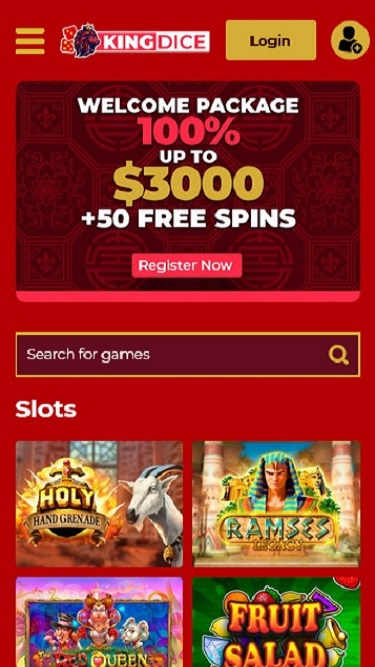 King Dice 採用簡潔直覺、使用者友善的賭場平台,營造舒適寧靜的氛圍。該平台的行動版本允許隨時隨地存取遊戲內容,並且經過完美優化,可適配所有裝置。