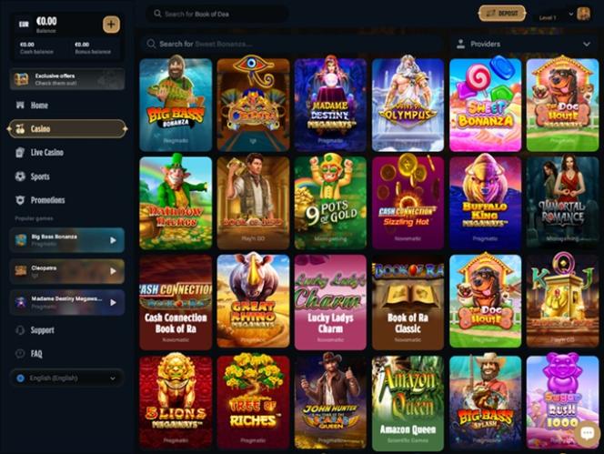 從純粹的視覺角度來看,該網站採用極簡主義主題,並融入眾多以卡通風格描繪中世紀場景的元素,賦予賭場獨特的風格和個性。玩家將擁有極其直覺、易於導航的使用者介面,輕鬆瀏覽所有可用的遊戲和活動。
