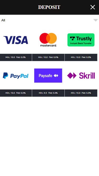- 並非所有列出的付款方式都適用於賭場接受的所有國家。