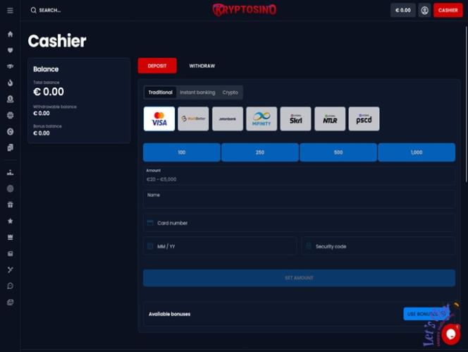 Banking銀⾏業務選項 的 Kryptosino Casino