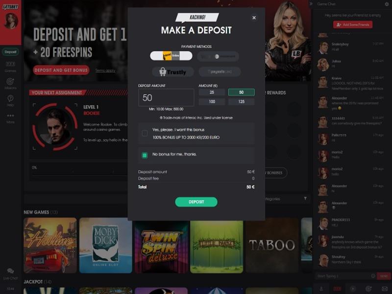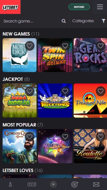Letsbet 賭場由 Microgaming, Net Entertainment, Big Time Gaming, ELK Studios, Evolution Gaming, lightningboxgames, Quickspin, Thunderkick, Yggdrasil, Endorphina, Games Global, NextGen, WMS and SG Interactive提供支持,賭場遊戲透過網頁平台提供,可直接透過您的網路瀏覽器載入。這非常棒,因為它操作簡單,無需在您的電腦上安裝繁瑣的軟體。該網站還全面支援行動裝置遊戲,讓您透過智慧型手機或平板電腦即可暢玩。
