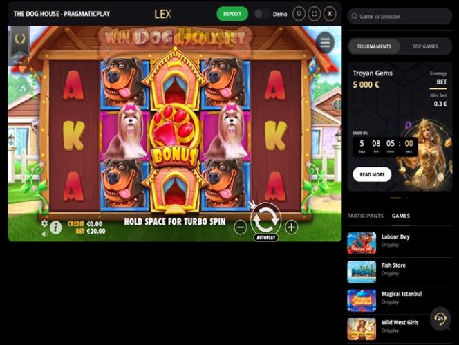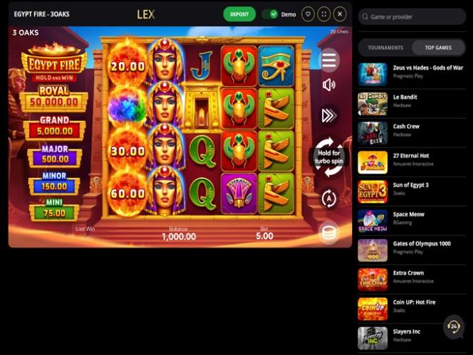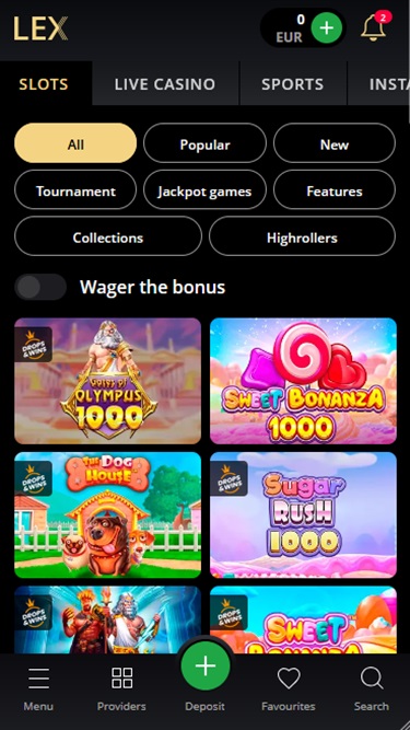 LEX Casino 平台匯聚了超過 120 家遊戲工作室,在市場上擁有強大的競爭力。如此豐富的軟體供應商選擇,即使是最資深的玩家也能在這裡找到滿意的遊戲,因為這裡提供數千款獨特的遊戲。