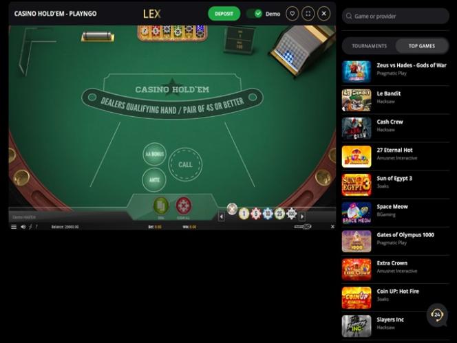 LEX 賭場受庫拉索博彩管理局監管並獲得許可。該品牌歡迎來自德國、奧地利、瑞士和芬蘭的玩家加入該平台,並邀請他們體驗各種娛樂選擇。