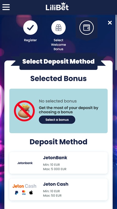只需完成幾個步驟,您就可以輕鬆註冊玩家帳戶並加入這家線上賭場。註冊時,您需要填寫一份簡單的表格,提供標準的個人信息,同意賭場的條款和條件,並確認所有資訊均準確無誤。下一步,您可以選擇一項迎新獎金(如果您願意)。最後,您可以進行首次存款並開始探索 Lilibet 的內容,這正是我們即將推出的,敬請期待!