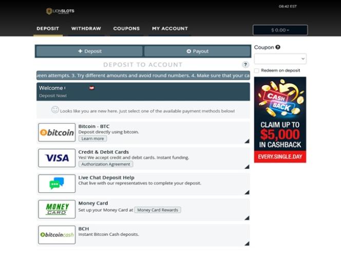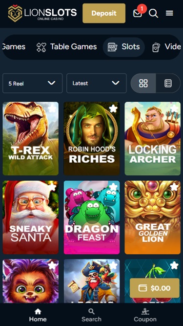 Lion Slots Casino 由 Real Time Gaming and Spinlogic Gaming提供支持,其遊戲透過可下載的軟體以及即時播放模式提供。