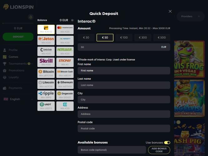 LionSpin Casino 是一家線上賭場,由一家根據庫拉索法律註冊的公司擁有。該業者面向來自加拿大、智利、愛爾蘭、挪威、芬蘭、波蘭、紐西蘭和巴西的玩家。