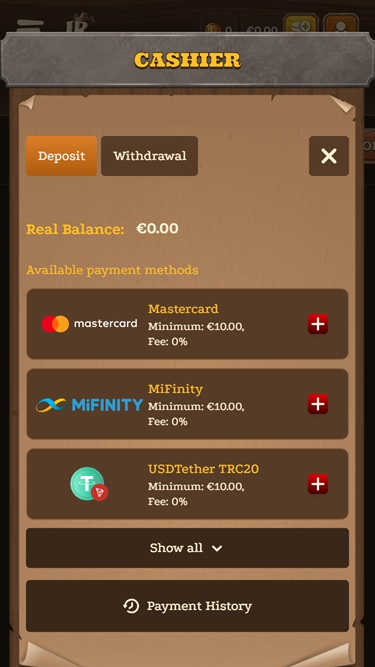 從視覺效果和美學角度來看,該網站採用了相當獨特的主題。品牌的主要吉祥物是一隻蜥蜴,整個網站環境以狂野西部為主題,這種別出心裁的組合賦予了賭場鮮明的個性。主色調以深色背景和棕色為主,使用者介面簡潔易用,操作直覺。