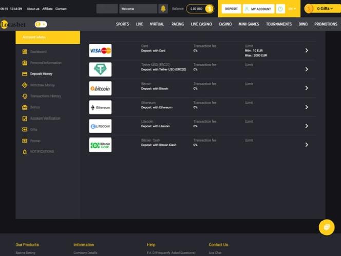 Locasbet 包括體育、現場、虛擬、賽車、真人娛樂場、娛樂場、迷你遊戲、錦標賽、恐龍和促銷部分,因此賭徒將有機會嘗試各種遊戲類型和娛樂場類型、兌換不同類型的顯著獎金等等。