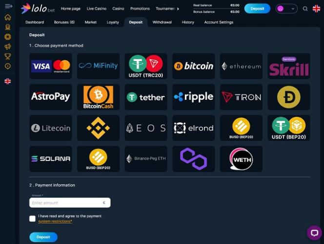 賭場採用的是根據最新iGaming趨勢構建的有趣平台,完美滿足了現代玩家的需求。快速的瀏覽速度、支援加密貨幣的銀行業務方式以及豐富的流行數位貨幣選擇、極佳的最低存款和最低提款限額以及誘人的促銷優惠,都給人留下了深刻的印象,LoloBet 似乎能為註冊會員提供諸多優惠。