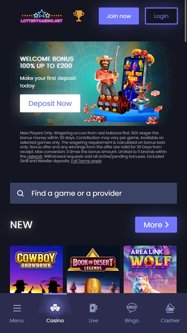 Lottery Casino 是一家線上博弈網站,於 2012 年首次上線,專注於為客戶提供行動裝置賭場遊戲。賭場擁有豐富的遊戲庫和合理的銀行服務時間,如果您正在嘗試行動裝置博彩,Lottery Casino 是一個不錯的選擇。