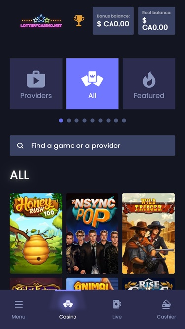 彩票賭場 (Lottery Casino) 提供多種經典和現代視訊老虎機供您玩,該網站還提供累積獎金,可以讓您瞬間致富。