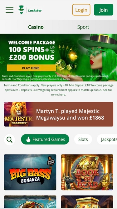 可用的遊戲被很好地分為以下幾類:特色遊戲、老虎機、Drops & Wins、Slots'n Bash、真人娛樂場和累積獎金。
