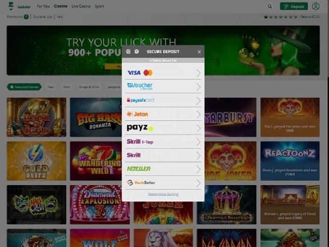 Luckster 提供多種銀行支付方式,即使不支援加密貨幣支付,玩家也可以選擇多種快速可靠的解決方案。其中包括銀行電匯、電子錢包和其他線上支付方式。請注意,透過某些支付方式提領可能需要長達六個工作天。