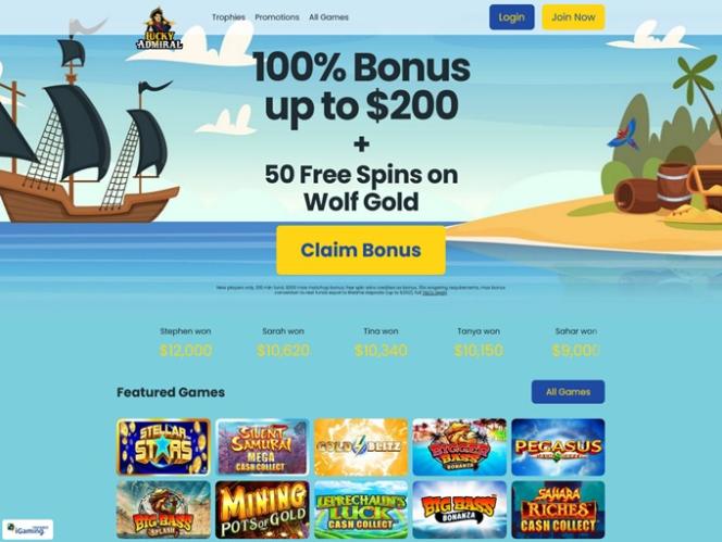 Lucky Admiral Ontario 給我們留下了絕佳的第一印象。一進入網站,溫暖多彩的環境就映入眼簾。設計師選擇了海盜主題,與網站鮮豔的配色和以明亮的海洋和異國島嶼為特色的藝術風格完美融合。
