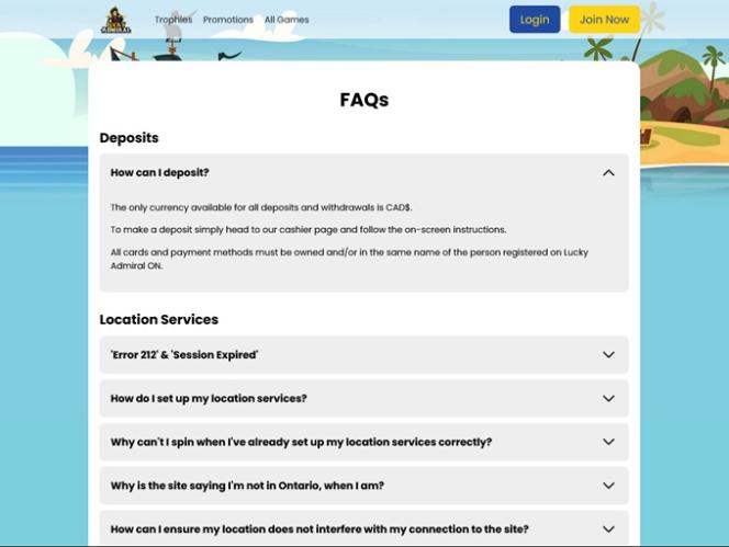Lucky Admiral Ontario 受安大略省酒精和博彩委員會 (AGCO) 監管並持有其牌照。該品牌僅接受安大略省玩家加入平台,歡迎他們註冊並探索其提供的所有活動和遊戲。