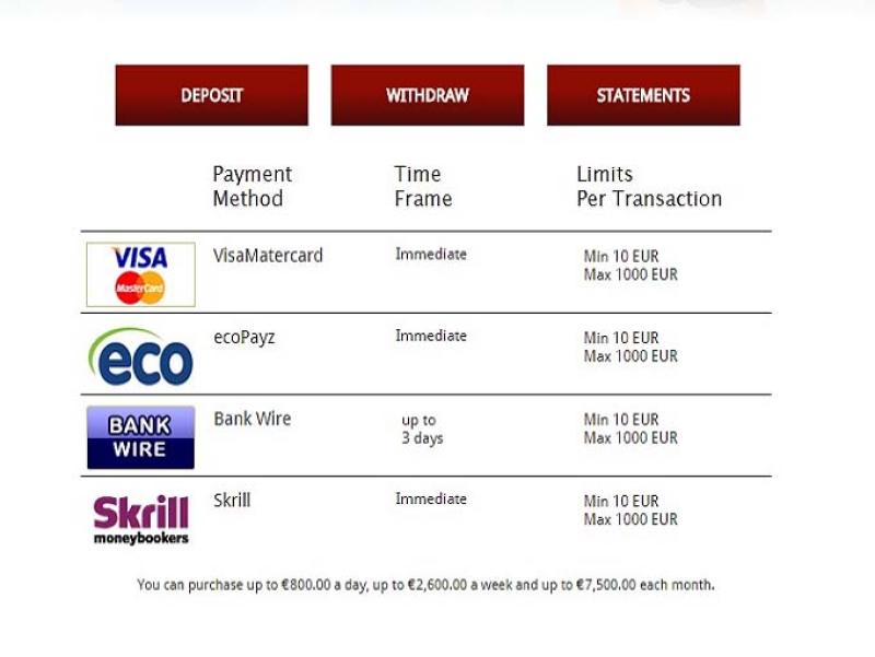 Pending time: 48 hours; E-wallets: 48 hours; Credit/Debit Cards: 2-3 business days; Bank Wire: 5 business dyas