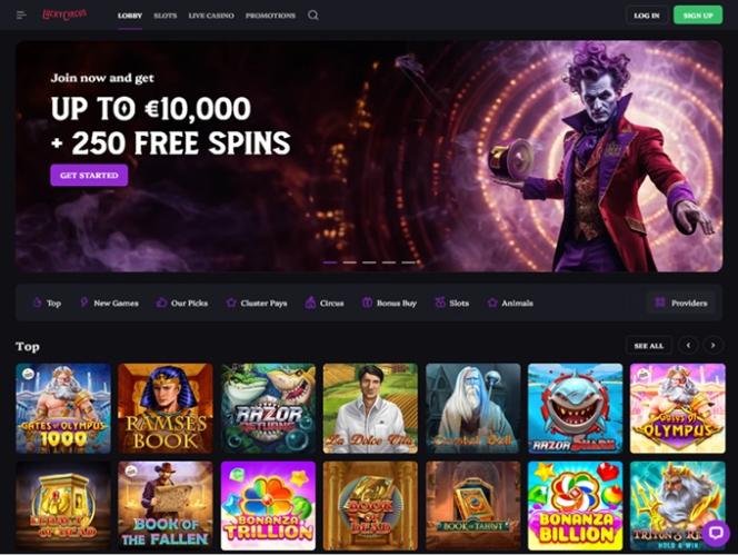 Lucky Circus Casino 是一個現代化的博彩網站,擁有豐富的遊戲庫,包含超過 10,000 種獨特的遊戲,包括線上老虎機、真人荷官、桌上遊戲和速成遊戲。該品牌旨在透過提供豐厚的促銷計劃來吸引大量玩家,該計劃包含各種促銷活動、獎金和錦標賽,並提供多種支付方式,包括比特幣等加密貨幣。