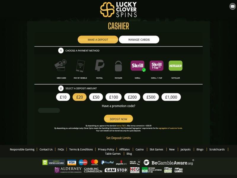 Banking銀⾏業務選項 的 Lucky Clover Spins Casino