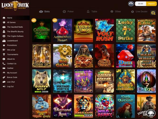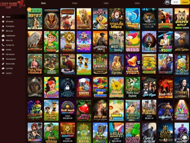 Lucky Creek 賭場由 BetSoft, Evolution Gaming, Rival, Saucify and Genii提供支持,擁有豐富的桌上遊戲、視訊撲克和老虎機遊戲庫。玩家可以透過下載的軟體或網頁版平台訪問賭場,該平台允許您透過網路瀏覽器進行遊戲。此外,我們也提供行動網站,方便希望透過智慧型手機或平板電腦造訪 Lucky Creek 的玩家。