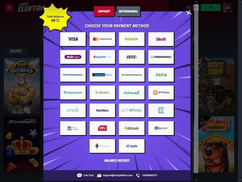 Banking銀⾏業務選項 的 Lucky Elektra Casino