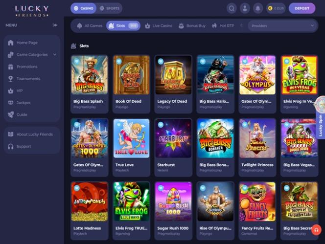 如果您是新手,不知從何入手,我們建議您深入了解 Lucky Friends 不斷擴展的真錢老虎機選擇。這家賭場提供數千款精彩刺激的老虎機遊戲,涵蓋各種類別和類型。