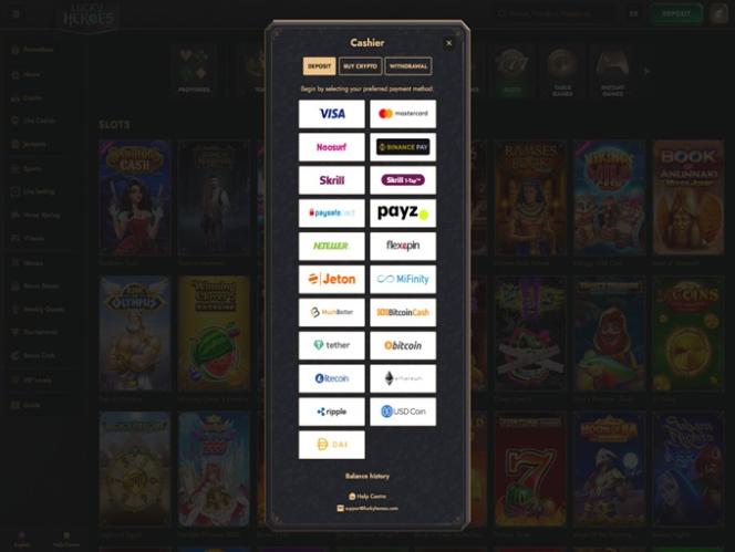 Banking銀⾏業務選項 的 Lucky Heroes Casino
