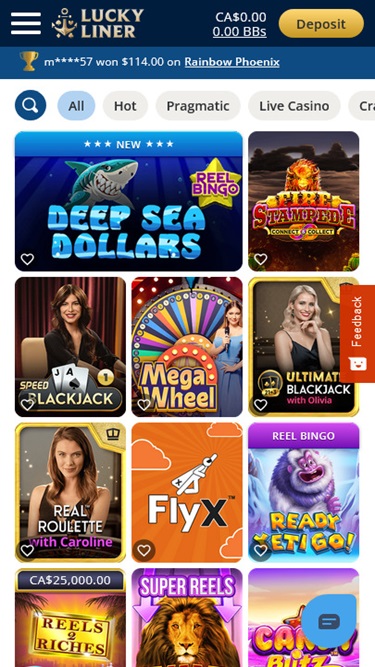 Android 和 iOS 裝置均可輕鬆存取網站並暢玩所有遊戲。手機遊戲玩家無需下載應用程式即可暢玩;他們只需透過手機瀏覽器造訪 Lucky Liner 網站即可。