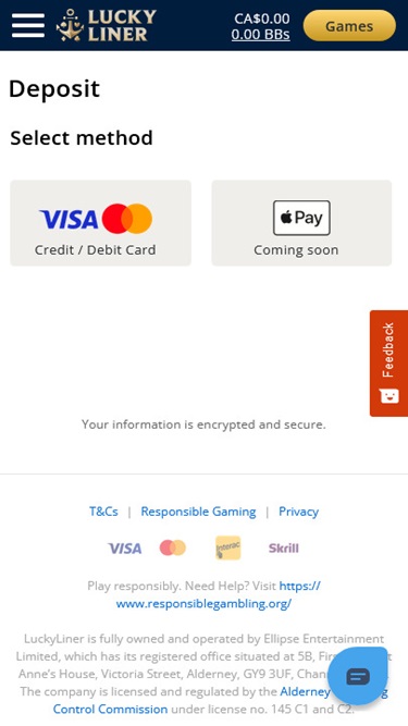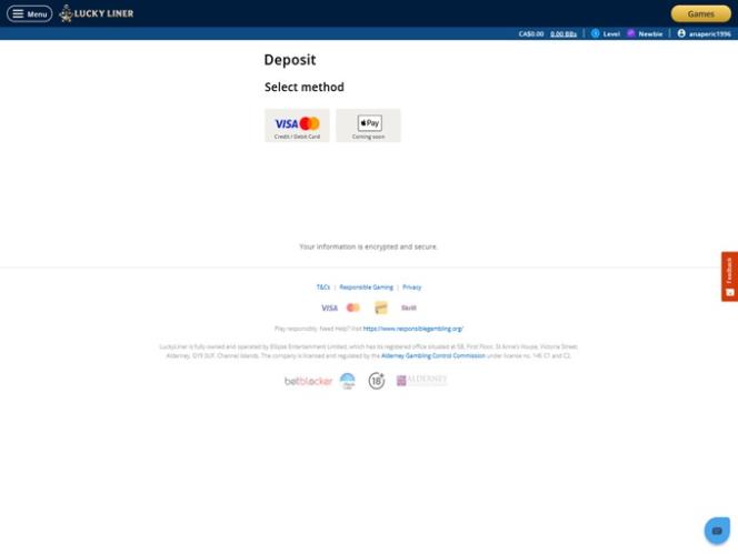 Lucky Liner 賭場由奧爾德尼島博彩管理委員會授權和監管。至於接受的國家/地區,該品牌僅接受來自加拿大的玩家。
