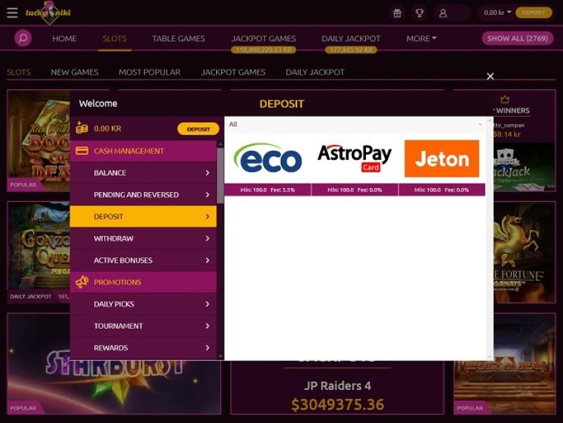 Banking銀⾏業務選項 的 Lucky Niki Casino