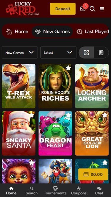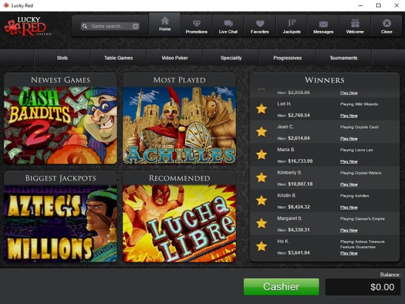 Lucky Red 由 Real Time Gaming軟體推出。此遊戲平台可透過下載軟體或提供有限數量遊戲的 Instant Play Flash 版本使用。