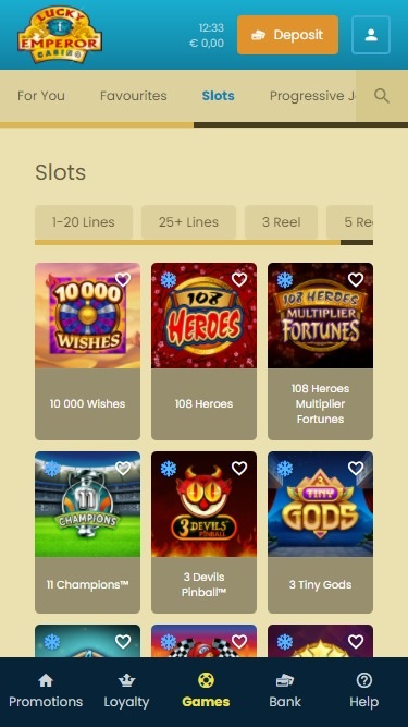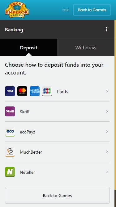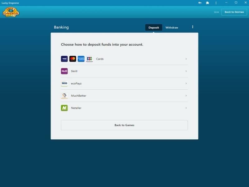 Lucky Emperor Casino 由 Microgaming, Evolution Gaming, Rabcat, Triple Edge Studios, Northern Lights Gaming, Stormcraft Studios, Switch Studios, Electric Elephant Games, All41 Studios, Gameburger Studios, Pulse 8 Studios, Neon Valley Studios, SpinPlay Games, Real Dealer Studios, GONG Gaming, On Air Entertainment, Buck Stakes Entertainment, Games Global, Old Skool Studios, Foxium, Just For The Win, PearFiction Studios, Slingshot Studios, Fortune Factory Studios, Crazy Tooth Studio, Alchemy Gaming, Snowborn Games, Gold Coin Studios, Half Pixel Studios, Eurostar Studios and Aurum Signature Studios提供支持,透過其各種平台提供數百款遊戲。您可以透過下載或網頁瀏覽器造訪賭場,選擇您喜歡的選項。此外,賭場還提供行動版本,方便玩家透過智慧型手機和平板電腦進行遊戲。 Mac 用戶也將直接透過此行動網站進行遊戲。Baccarat